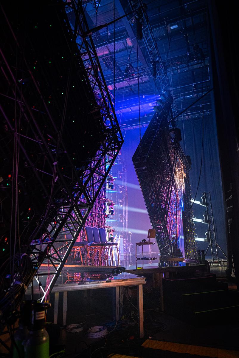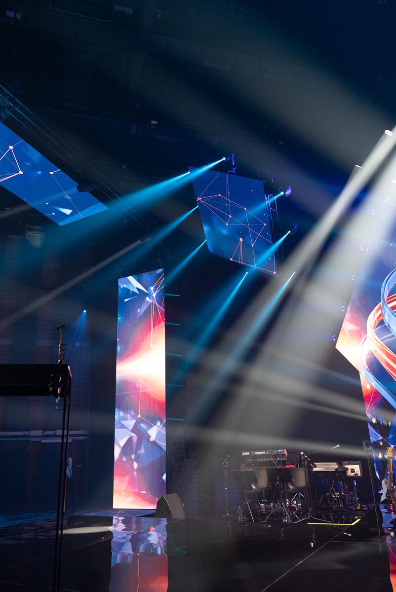 Dzięki temu możliwa była realizacja złożonej wizji sceny opartej na ostrych bryłach, trzech głównych ekranach LED i rozbudowanej warstwie oświetleniowej.
