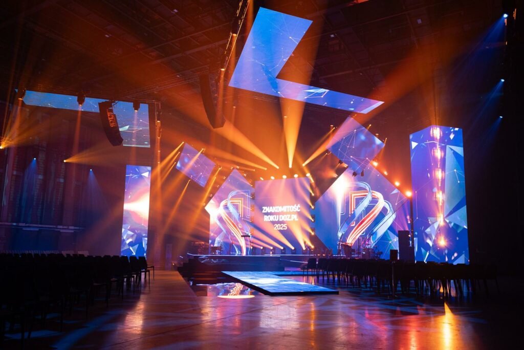Za projekt i realizację sceny odpowiadała agencja HOLO Events, a kluczowym partnerem technologicznym i wykonawczym było Brill AV Media, odpowiedzialne za kompleksową obsługę AV, konstrukcyjną i multimedialną. Niniejsze studium przypadku przedstawia proces powstania sceny do uroczystej gali rozdania nagród – od pierwszej koncepcji, przez ekspresowy etap projektowy, aż po trzydniowy montaż wymagający prawie setki wyciągarek i precyzyjnej synchronizacji światła i multimediów.