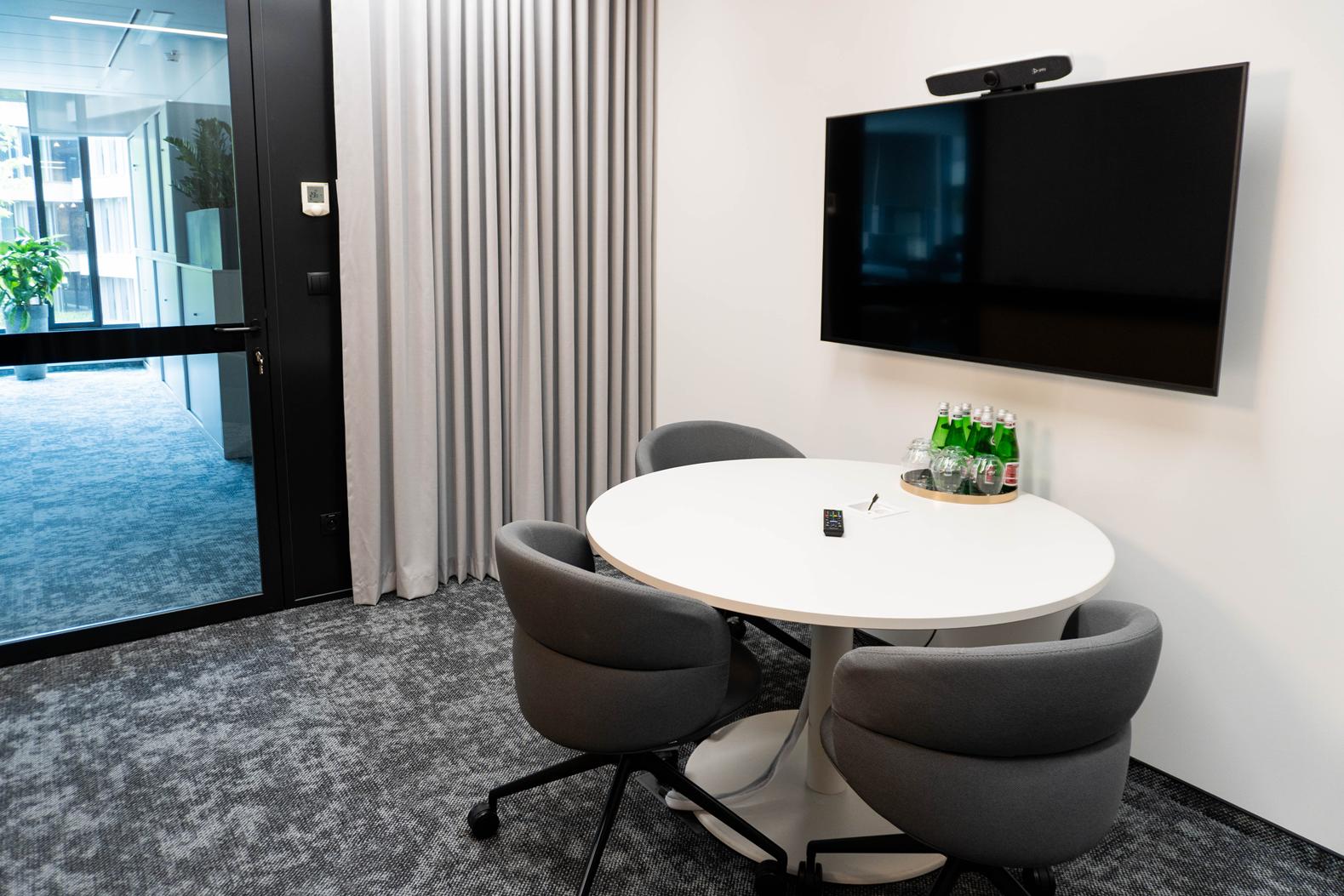 Każde z mniejszych pomieszczeń zostało przystosowane do prowadzenia codziennych spotkań zespołowych oraz rozmów z klientami i partnerami biznesowymi. Proste w obsłudze systemy wideokonferencyjne pozwalają na szybkie uruchomienie połączenia, bez potrzeby zaawansowanej konfiguracji.