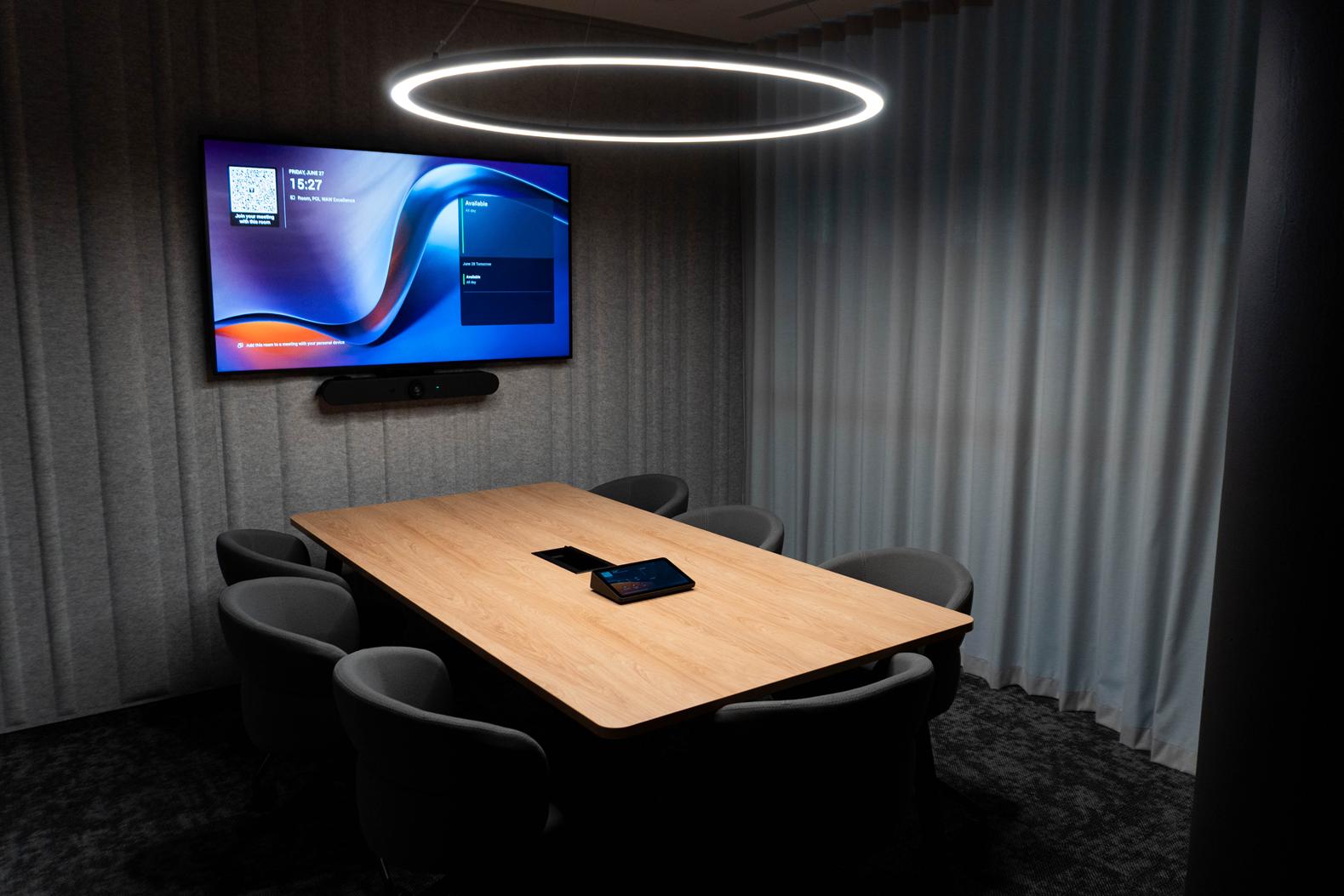 Zaprojektowanie i wdrożenie nowoczesnej, spójnej infrastruktury AV, która umożliwia sprawną komunikację w ramach zespołu oraz prowadzenie spotkań hybrydowych w wysokiej jakości. Kluczowym założeniem było zapewnienie prostoty obsługi, niezawodności działania oraz integracji z wewnętrznymi systemami klienta — przy jednoczesnym zachowaniu estetyki zgodnej z koncepcją architektoniczną biura.